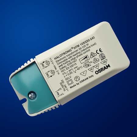 Výhody produktu: Velmi nízká ztráta výkonu díky vysoké účinnosti. Odlehčení vhodné pro různé typy kabelů (HTM). Vhodné pro prostorově náročné instalace díky kompaktnímu funkčnímu designu. Extrémně kompaktní transformátor pro vysoce prostorově náročné podmínky instalace (HTN). Ochranný provoz v celém rozsahu částečné zátěže pro dlouhou životnost světelného zdroje. Vlastnosti produktu: Kmitočet: 50 – 60 Hz. Odrušení: podle EN 55015 (A1: 2007)/CISPR 15, EN 55022. Harmonické složky ve vedení podle EN 61000-3-2. Odolnost v souladu s EN 61547. Bezpečnost: podle EN 61347. Ochrana proti zkratu, ochrana proti přetížení, ochrana proti přehřátí: elektronicky obousměrné. Elektrická izolace mezi primární stranou a sekundární stranou. Energetická účinnost: ? 91 % (podle předpisu ErP 2012/1194/ES). Možnost stmívání na náběžné hraně (bez HTN) a sestupné hraně. Druh použití: Efektní a akcentové osvětlení. Obývací pokoje. Osvětlení předmětů. Konferenční prostory. Restaurace. Nábytková svítidla pro povrchovou montáž a zapuštění. Osvětlení pro prodejny. Společenské místnosti.