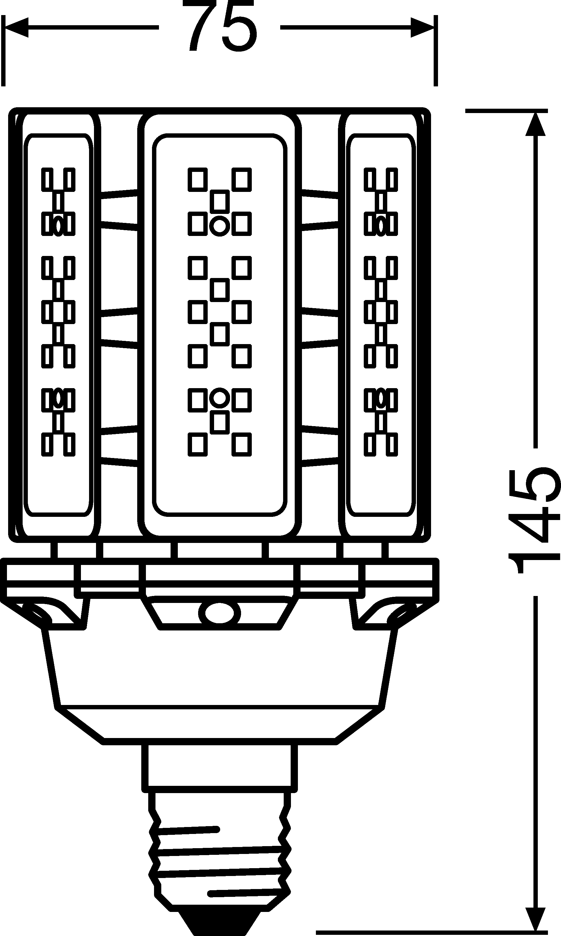 LED ekvivalent k HID výbojkám pro venkovní použití. Vlastnosti produktu: Ekvivalent HQL: Vhodné pro provoz s tradičním předřadníkem (CCG) pro HQL nebo 230 V ze sítě. Replacement for other HID: Suitable for operation with line voltage without control gear. Výkonový koeficient: 0,9. Stupeň krytí: IP65. Vysoká úroveň přepěťové ochrany: až 4 kV (L-N). Výhody produktu: Úspora energie až 78 % při výměně za světelné zdroje s obsahem rtuti (HQL). Nízké náklady na údržbu díky dlouhé životnosti. Okamžitě 100 % světla, bez náběhu. Druh použití: Ulice. Plošné osvětlení. Pěší zóny. Parky. Venkovní použití pouze ve vhodných svítidlech.
