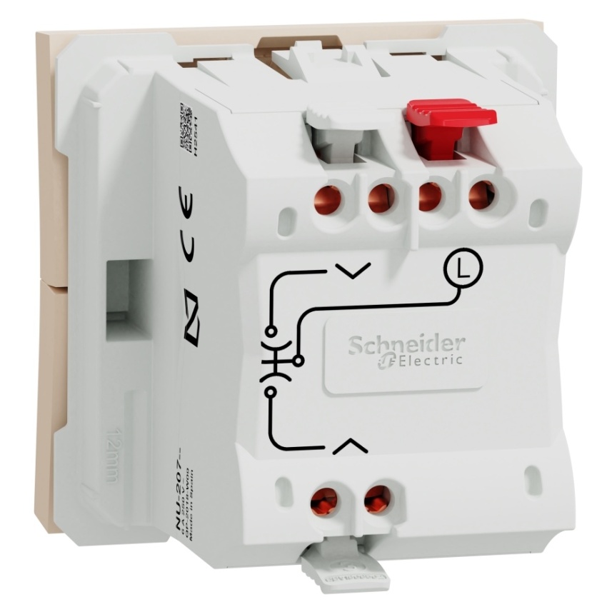 Schneider Electric Nová Unica žaluziové tlačítko NU320744 je mechanismus v barvě béžové Připojovací svorky tohoto žaluziového tlačítka jsou bezšroubové. Způsob upevnění tohoto zařízení je nacvaknutí. Šířka 45 mm, výška 45 mm, hloubka 44,35 mm, hloubka zapuštění 32,8 mm, A výrobek váží 0,0331 kg. Se 2 moduly. Je s orientační kontrolkou bez LED diody. Jedná se o 3polohové žaluziové tlačítko. Tento výrobek se prodává v 10 kusech. Získal také certifikát AENOR, CE, EAC, NF. Je vyrobeno z Cu. Zn15, PBT (polybutylentereftalát) GF30, PC (polykarbonát) GF10 FR, termoplastický materiál stabilizovaný ABS-UV, je toto roletové tlačítko spolehlivé a odolné. Kromě toho dosahuje úrovně ochrany IK04, která může pomoci chránit před nárazem. Navíc splňuje normu IEC 60669-1, směrnici LV, Ro. HS. Také je šetrné k životnímu prostředí, přičemž je odolné vůči UV záření, acetonu, alkoholu, čpavku, bělidlu, tekutému mýdlu, oleji, benzínu, kapalině na čištění oken. Dielektrická pevnost, což je míra elektrické pevnosti materiálu jako izolantu, je 2000 V. A jeho jmenovitý proud je 6A. Toto žaluziové tlačítko také neobsahuje SVHC (látky vzbuzující mimořádné obavy). Nová Unica zahrnuje sadu nových designů, barev a materiálů. Uživatelé mohou těžit z krásného designu, který odpovídá jejich stylu, a inovativních produktů. Nová Unica je navržena s chytrými funkcemi, které jsou flexibilní, snadno pochopitelné a rychle se instalují a poskytují řešení pro všechny požadavky zákazníků.