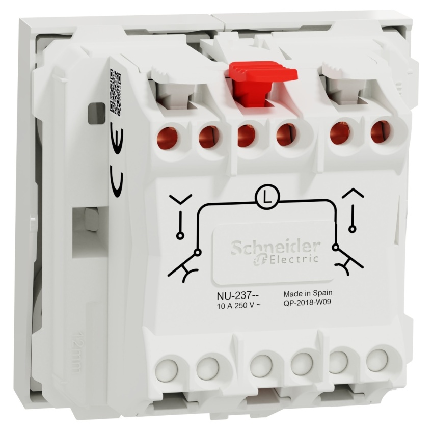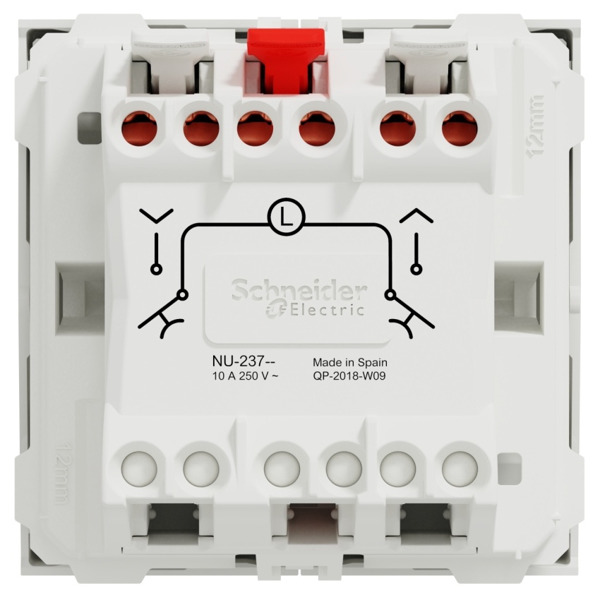 Schneider Electric Nová Unica tlačítkový ovládač NU323718 je mechanismus v barvě bílé Připojovací svorky tohoto tlačítkového spínače jsou bezšroubové. Je vyrobeno z Cu. Zn37, PBT (polybutylen tereftalát) GF30, PC (polykarbonát) GF10 FR, termoplastický materiál stabilizovaný ABS-UV, je tento tlačítkový spínač spolehlivý a odolný. Jeho šířka je 45 mm, výška 45 mm, hloubka 34,25 mm, hloubka zapuštění 21,15 mm, A výrobek váží 0,0288 kg. Kromě toho neobsahuje halogeny, což je prospěšné pro vaše zdraví. Je s orientačním světlem bez LED. Režim upevnění tohoto zařízení je nacvaknutí. Tento výrobek se prodává po 10 kusech. Navíc vyhovuje normě IEC 60669-1, směrnici LV, Ro. HS. Získal také certifikát AENOR, CE, EAC, NF. Také je šetrné k životnímu prostředí, přičemž je odolné vůči UV záření, acetonu, alkoholu, čpavku, bělidlu, tekutému mýdlu, oleji, benzínu, kapalině na čištění oken. Dielektrická pevnost, míra elektrické pevnosti materiálu jako izolantu, je 2000 V. A jeho jmenovitý proud je 10 A. Tento tlačítkový spínač také neobsahuje SVHC (látky vzbuzující mimořádné obavy). Povrchová úprava je lesklá, což zajišťuje jasný, rovnoměrný a příjemný vzhled.