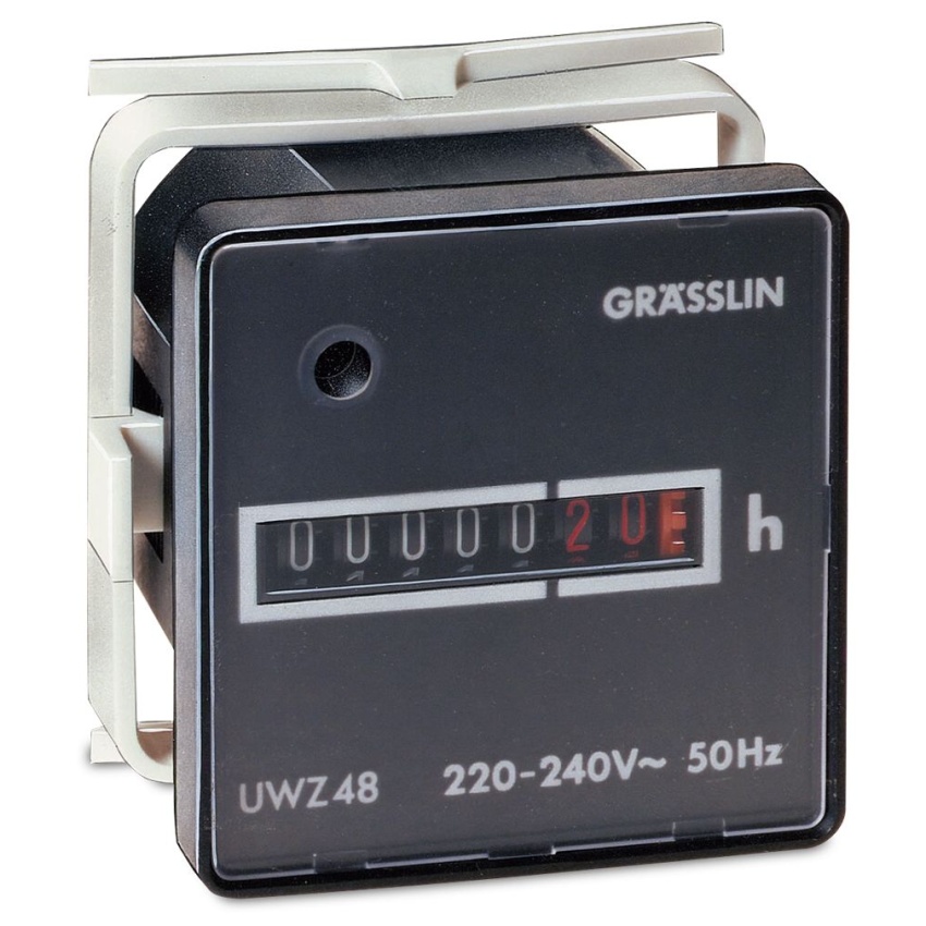 Počítadlo provozních hodin - montáž do panelu (montážní otvor 45 x 45 mm), šroubové svorky, synchronní motorek, kapacita počítadla 99 999,99 hodin, teplota okolí -20°C až +55°C, IP 20, připojení 18-26V/50Hz.