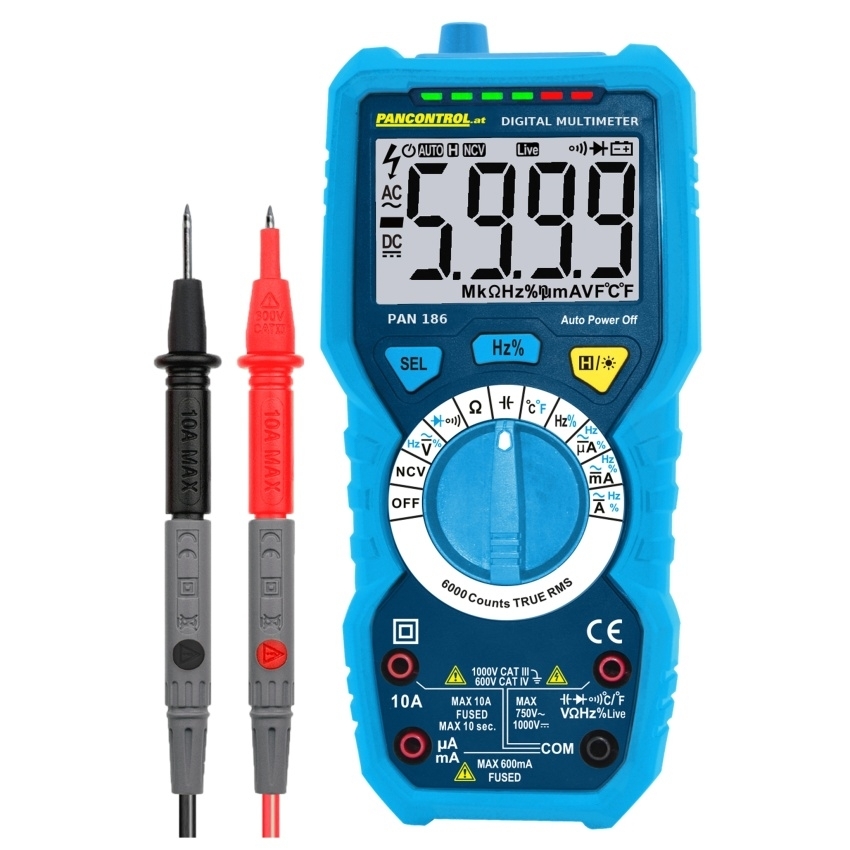 PANCONTROL MULTIMETR DIGITÁLNÍ 1000V AC/DC TRUE RMS AUTOM. VOLBA ROZSAHU PAN 186