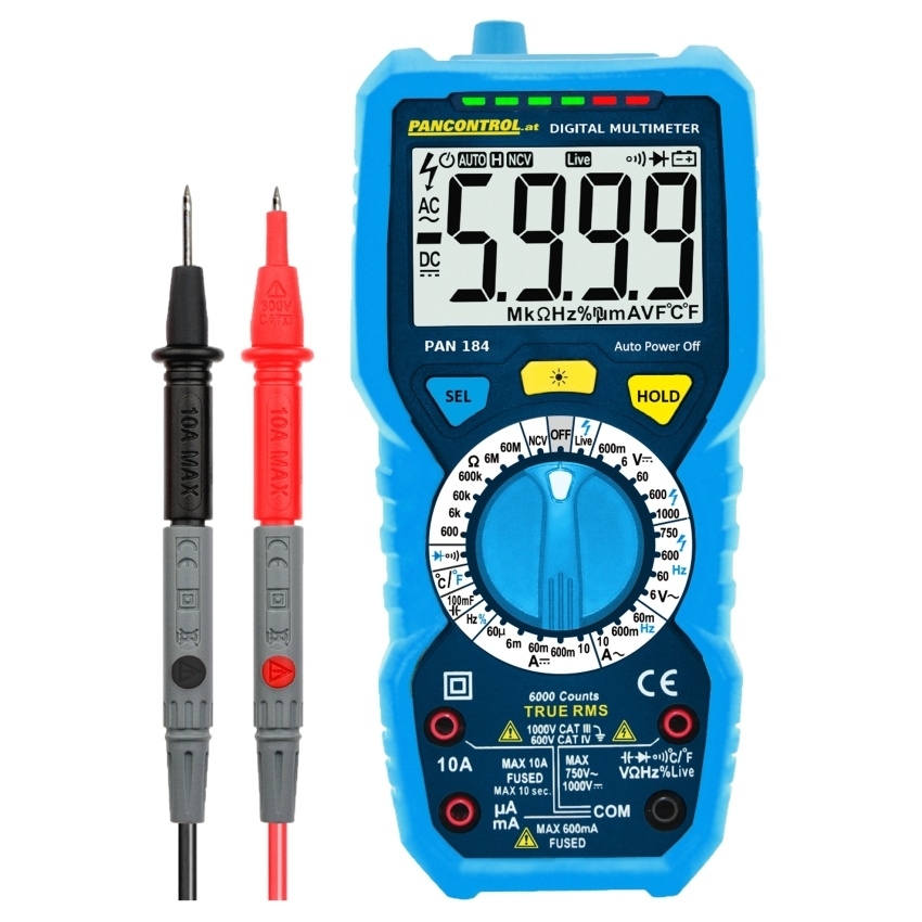 PANCONTROL MULTIMETR DIGITÁLNÍ 1000V AC/DC TRUE RMS MĚŘ. TEPLOTY KAPACITY A FREKVENCE PAN 184