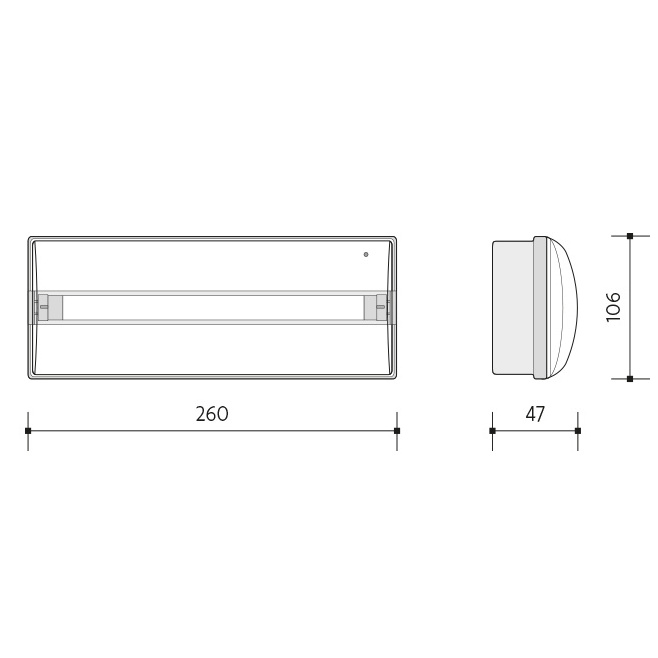 Klasické nouzové svítidlo ze série PLUTO s baterií (autonomní) – při výpadku proudu dojde k rozsvícení zdroje, který je napájen z baterie. Použití: veřejné budovy (supermarket, hypermarket, samoobsluha, kino, divadlo, apod.), větší bytové budovy (např. panelové domy).