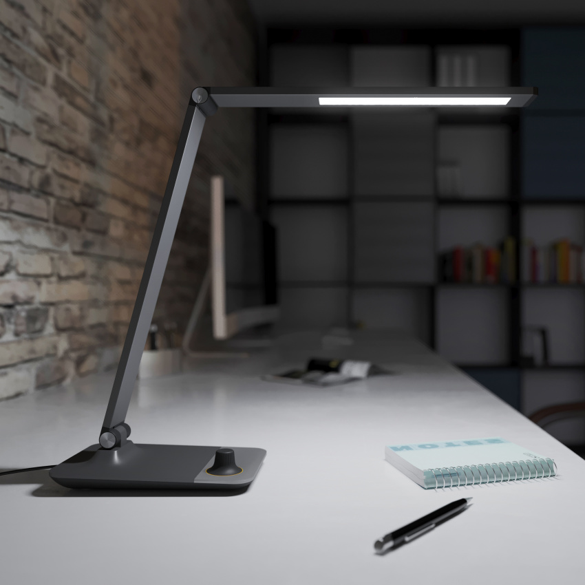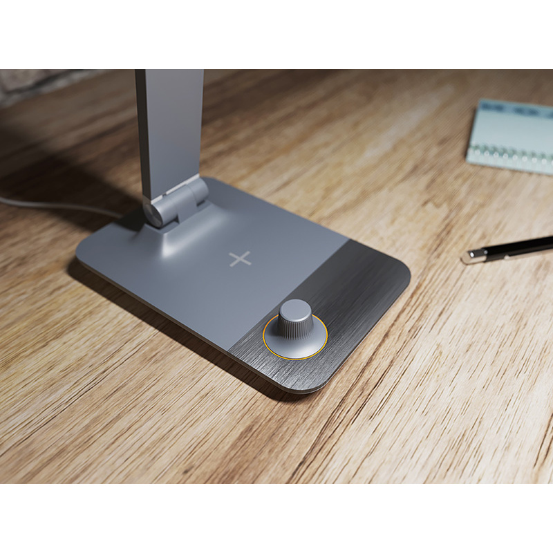 Elegantni stolní LED lampička s integrovanou bezdrátovou nabíječkou v podstavci.