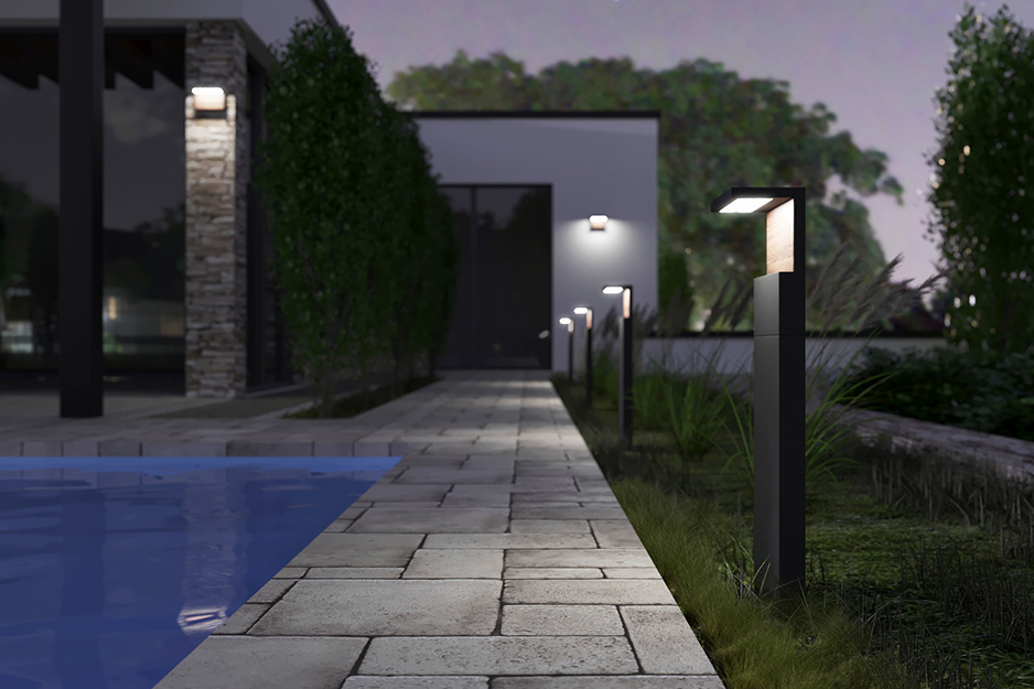 Venkovní LED svítidlo do zahrady v moderním hranatém designu s prvky v imitaci dřeva. #ZAHRADA2021