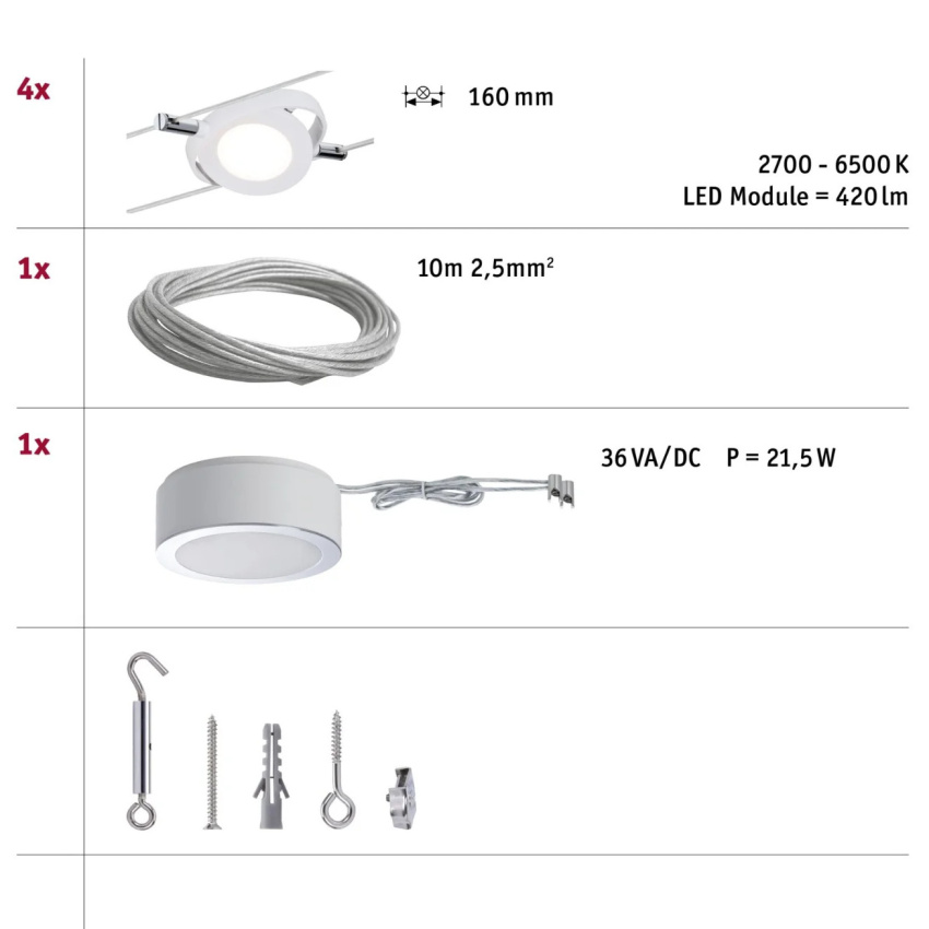 PAULMANN SMART LANKOVÝ SYSTÉM BLE ROUNDMAC 4X4W BÍLÁ MATT 230V/12VA DC 36VA 50107