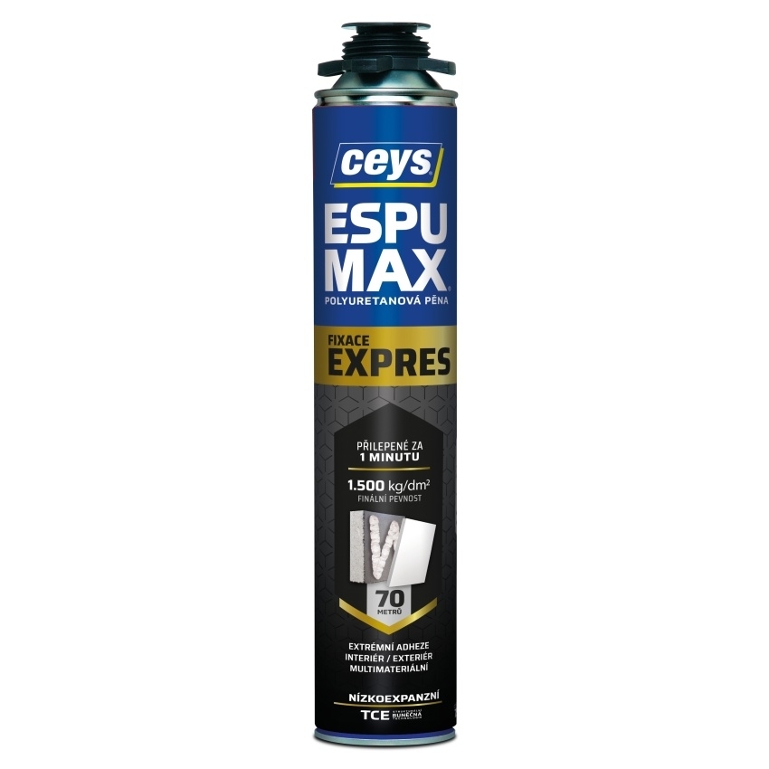 - Espumax polyuretanova pěna s Expres rychlou Fixaci je specialně určena pro rychlou a efektivni fixaci a montaž k dosaženi vyrazneho zkraceni pracovni doby.