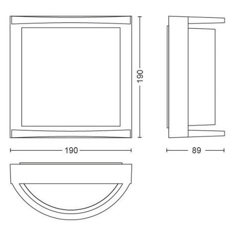 - Je zhotoveno z odolného hliníku s antracitovou povrchovou úpravou v kombinaci s bílým plastovým difuzorem, který je dominantou celého svítidla. Celkové rozměry svítidla činí 19 x 19 x 9 cm.