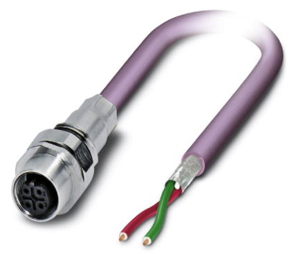 - Přístrojový konektor zpředu stěny, 2-pólový bezhalogenové, fialová RAL 4001, stíněná, Zásuvka, přímo, M12, kódování: B, na volný konec vodiče, Montáž na přední stěnu, M16 x 1,5, délka kabelu: 0,5 m, PROFIBUS