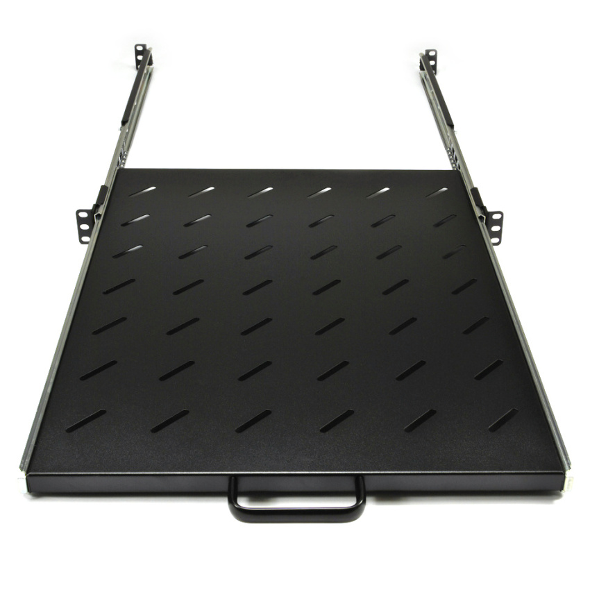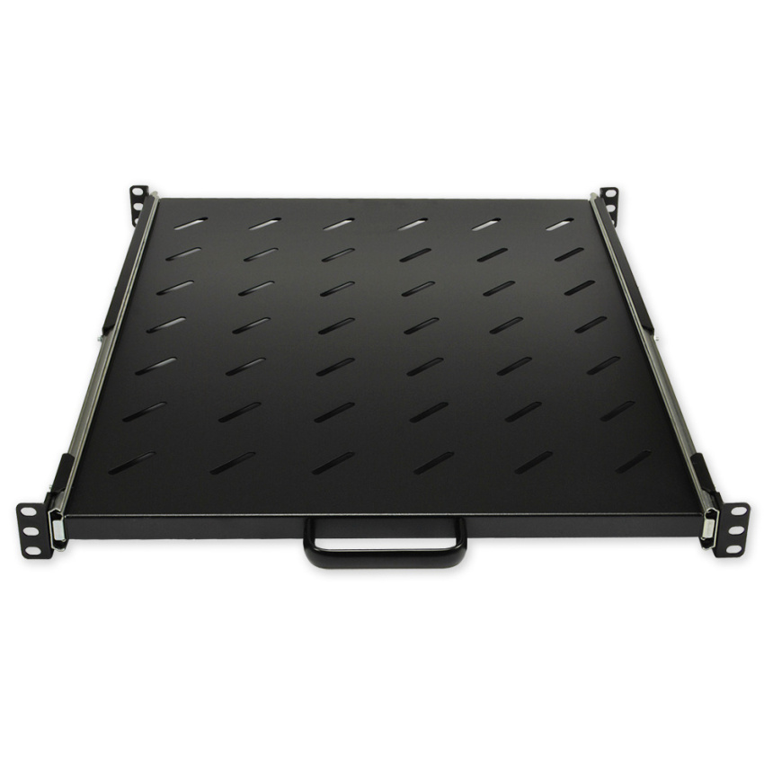 Polička výsuvná 19" s perforací, výška 1U, montáž do bočních lišt s nosností do 20 kg, hloubka 550 mm.