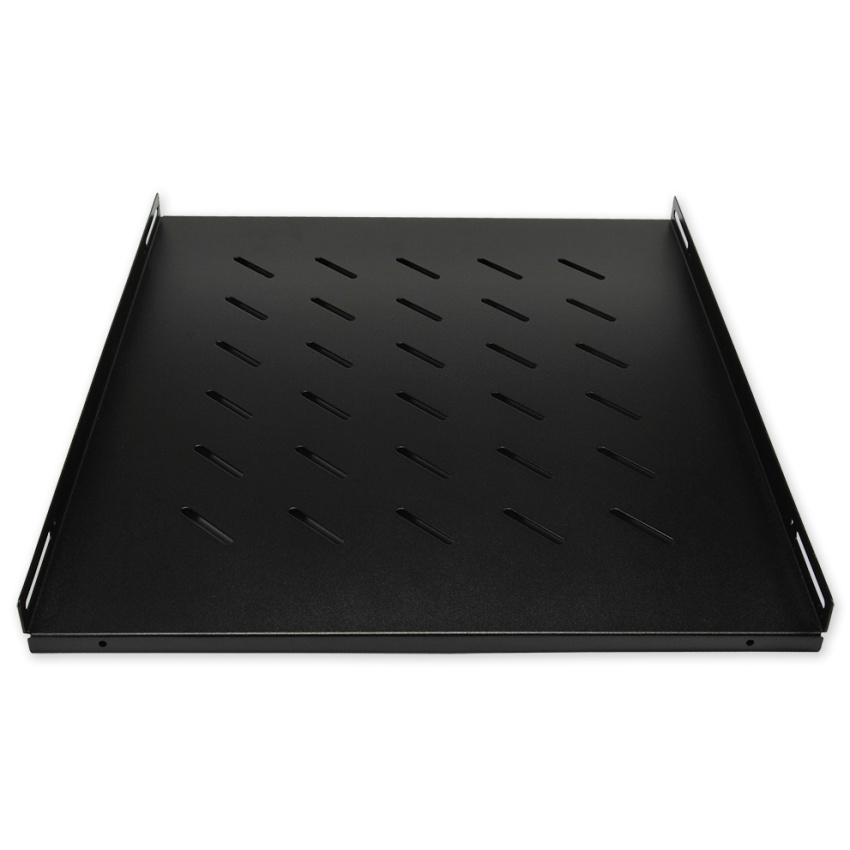 Polička 19" s perforací, výška 1U, hloubka 550 mm je určena pro montáž do bočních lišt s nosností do 60 kg, barva černá.