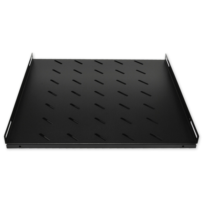 Polička 19" s perforací pro stojanové rozvaděče, výška 1U, montáž do bočních lišt s nosností do 60 kg, hloubka 475 mm.