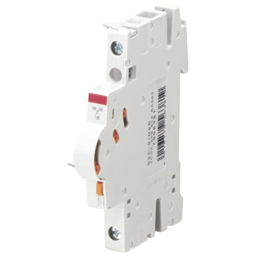 Signálový pomocný kontakt. Funkce S2C-S/H6R: volba přepínáním mezi zobrazením polohy kontaktů spínacího přístroje a signalizací poruchy (nadproud/zkrat u jističů a chráničů s nadproudovou ochranou; zemní porucha u chráničů a chráničů s jističem). Jsou vhodné pro jističe řady S 200, chrániče řady F 200, chrániče s jističem řady DS201, DS202C a DS 200.
