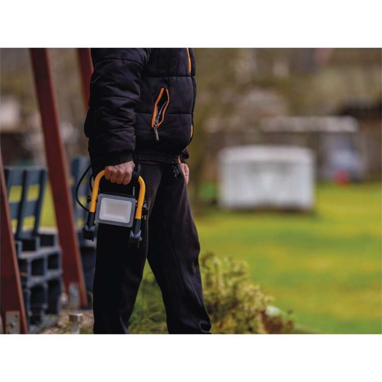 - Přenosný LED pracovní reflektor napájený ze sítě, který je možné použít ve vnitřním i vnějším prostředí. Díky své robustní konstrukci je vhodný pro práci v náročném prostředí, je nárazu a vodě odolný.