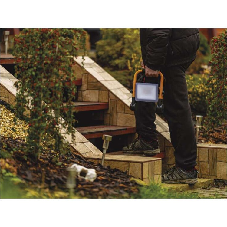 - Přenosný LED pracovní reflektor napájený ze sítě, který je možné použít ve vnitřním i vnějším prostředí. Díky své robustní konstrukci je vhodný pro práci v náročném prostředí, je nárazu a vodě odolný.