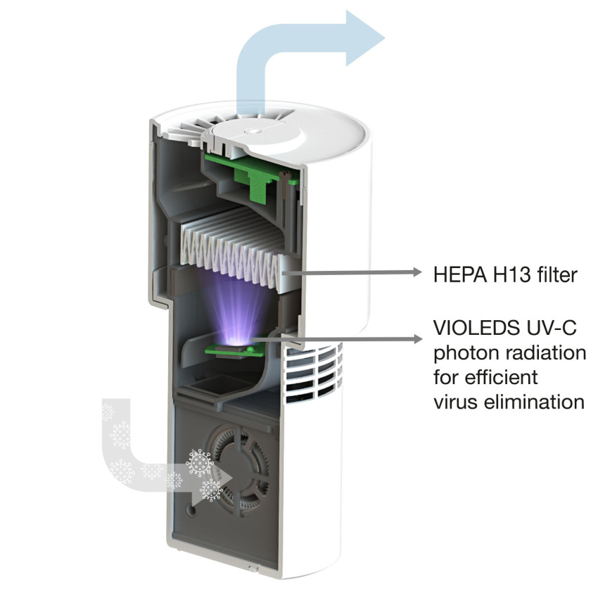 3. Další dezinfekce vzduchu v čističce vzduchu pomocí technologie VIOLEDS LED