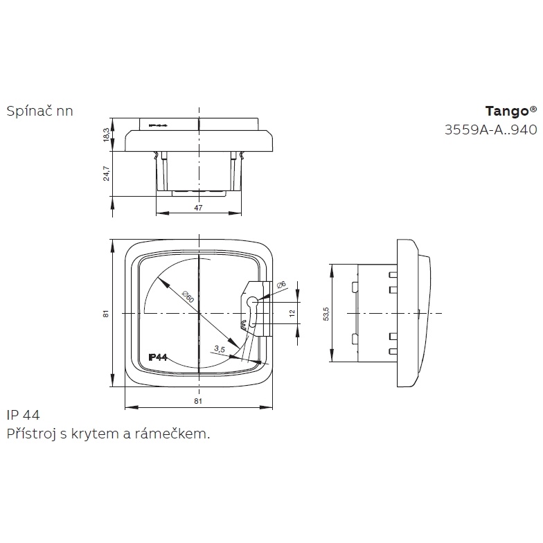 Přepínač střídavý č.6 IP44, zapuštěný, bezšroubové svorky ABB Tango 3559A-A06940 B bílá