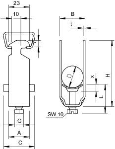 Třmenová příchytka, vhodná pro veškeré profilové lišty "C" s výřezem 16-17 mm