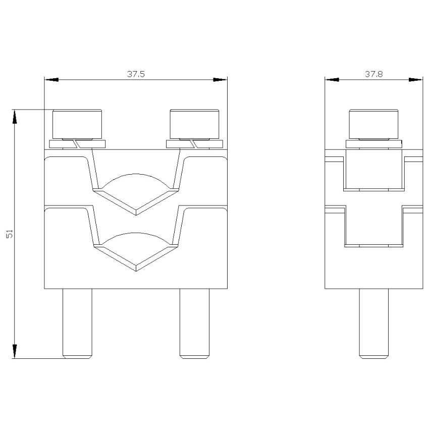 dvojitá prizmatická svorka pro 3NP1143.., připojení vodičů Cu 2× (35 ÷ 70) mm2, sada 3 ks