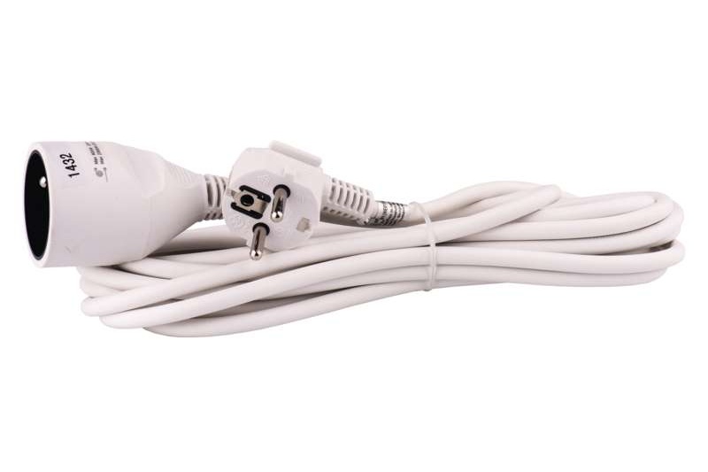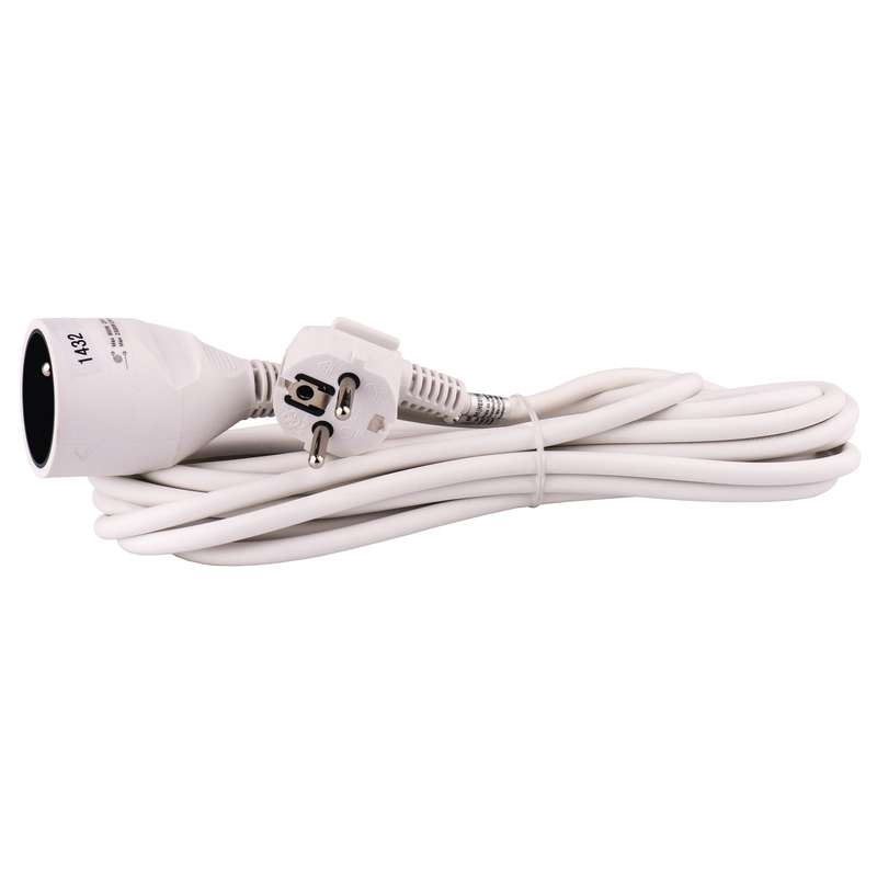 Bílý prodlužovací přívod s jednou zásuvkou - spojka, délkou 5 m a průřezem vodiče 1 mm2. Vhodný pro maximální zátěž 10 A max. Prodlužovací přívod 5 m na 230 V AC slouží k prodloužení elektrické energie tam, kam pevná zásuvka nedosáhne.
