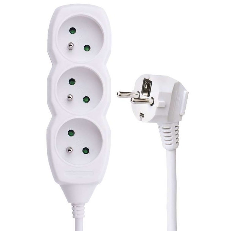 Prodlužovací kabel se 3 zásuvkami. Délka prodlužovacího kabelu je 3 m. Prodlužovací kabel nemá vypínač. Prodlužovací kabel má všestranné využití v domácnosti. Barevné provedení prodlužovacího kabelu je bílá.