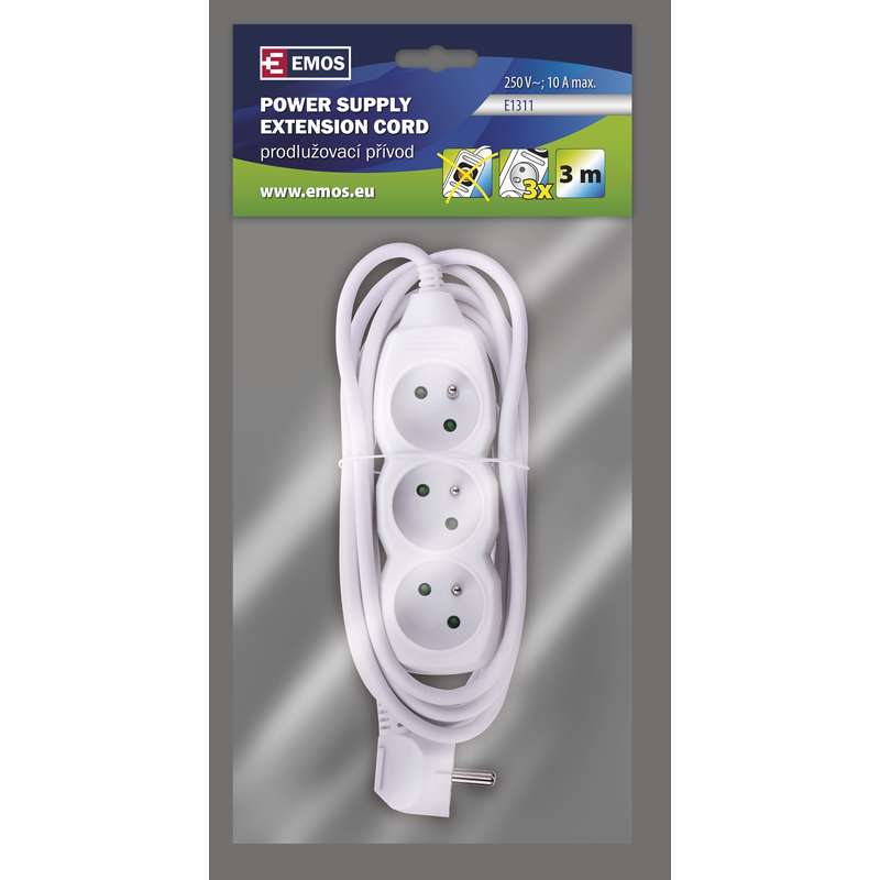Prodlužovací kabel EMOS P0313 3m 3xzás. 250V/10A PVC bílá
