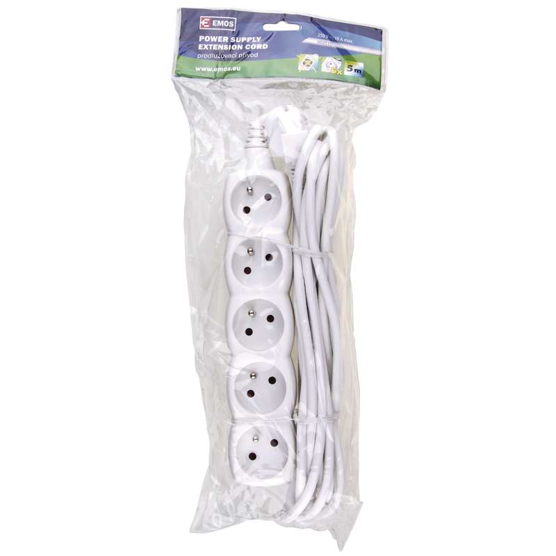 Prodlužovací kabel s 5 zásuvkami. Délka prodlužovacího kabelu je 5 m. Prodlužovací kabel nemá vypínač. Prodlužovací kabel má všestranné využití v domácnosti. Barevné provedení prodlužovacího kabelu je bílá.