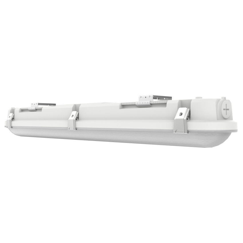 LEDVANCE DP CBO 600 V je odolné lineární svítidlo pro náročné prostředí s nastavitelným výkonem (Multi Lumen) i teplotou chromatičnosti (Multi Color) přímo na měniči. Díky krytí IP66 a nárazové odolnosti IK10 je ideální do garáží, průmyslových a skladových prostor, parkovišť či podchodů. Koncept Plug & Upgrade umožňuje snadnou přestavbu na senzorovou či nouzovou verzi; varianta MS využívá vysokofrekvenční snímač pro automatické spínání. Nízké blikání, vysoká účinnost až 153 lm/W a životnost až 50 000 h (L70/B50 při 25 °C) zajišťují spolehlivý a úsporný provoz, průchozí zapojení a zasouvací svorky zase urychlují instalaci.