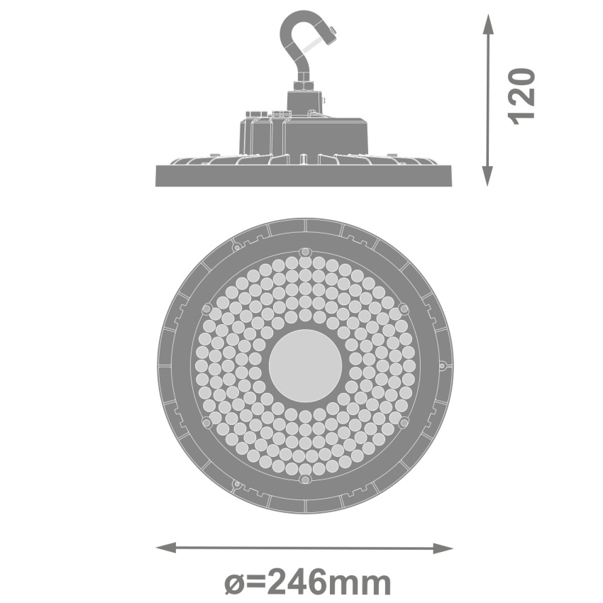LEDVANCE HIGH BAY HB V 120W 840 60DEG IP66 je moderní LED svítidlo určené pro osvětlení vysokých stropů v průmyslových, skladových a komerčních prostorách. Díky vysoké účinnosti až 185 lm/W a nízké úrovni blikání poskytuje kvalitní a úsporné osvětlení. Robustní konstrukce s krytím IP66 a odolností IK10 zajišťuje spolehlivý provoz i v náročných podmínkách. Nízká hmotnost svítidla umožňuje snadnou a rychlou instalaci. Svítidlo je ideální náhradou za tradiční "high bay" svítidla s výbojkami obsahujícími rtuť nebo halogenidovými výbojkami.