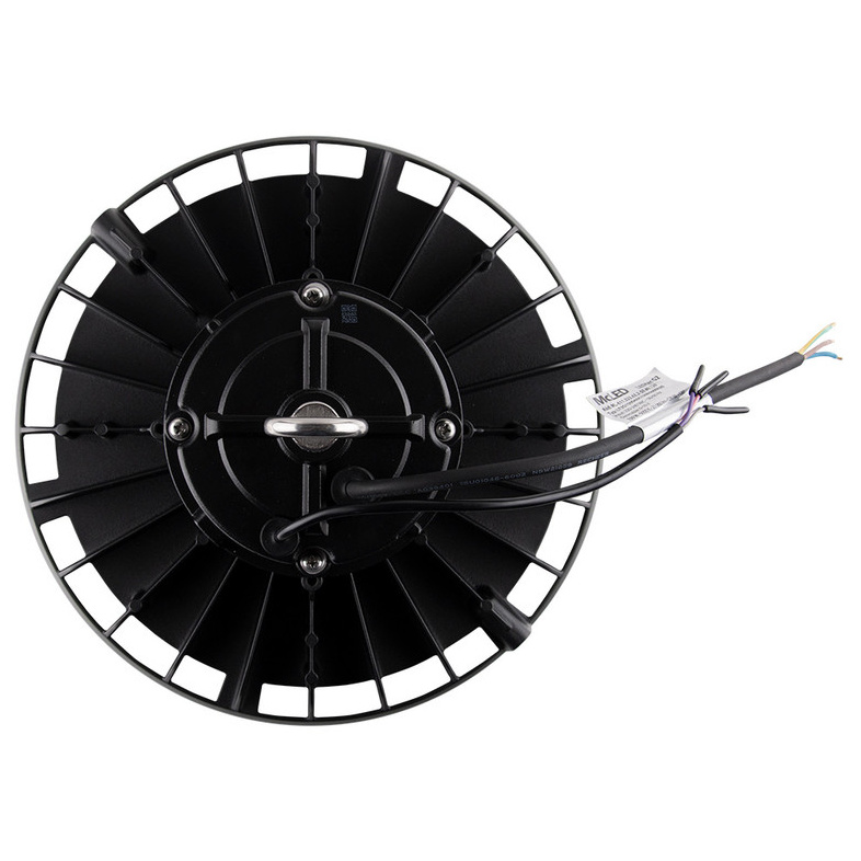 McLED LED průmyslové svítidlo 150 W, černý, 230 V, IP65, 5000 K, světelný tok 21660 lm, vyzařovací úhel 90 °, CRI80, životnost > 50.000 h, rozměry ? 280 x 159 mm, materiál hliník/plast, stmívatelné 0-10 V, PF>0,95, ke svítidlu lze dokoupit Al nebo PC reflektor a pohybové čidlo.