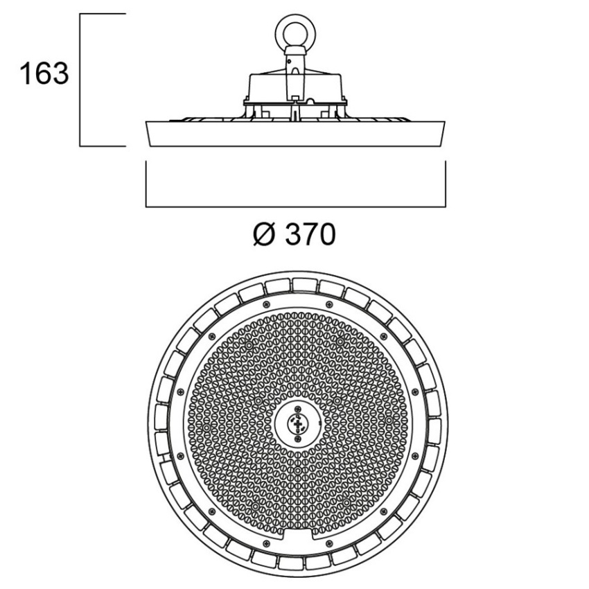 Granit IP65 0-10V 32000lm 840 MB - Integrovaný LED výškový prostor; Černé hliníkové pouzdro; 32000 lm; 200 W; 160 Lm/W; 4000 K; Hnací proud: 780 mA; CRI 80; úhel paprsku 55°; 0-10 V stmívatelný; IP65; IK08; Životnost L80:B20 92 000 hodin; (D x H) 370 x 163 mm; 1, 5 m síťový kabel; 1, 5 m ovládací kabel; 1, 2 m délka řetězu včetně háčků.