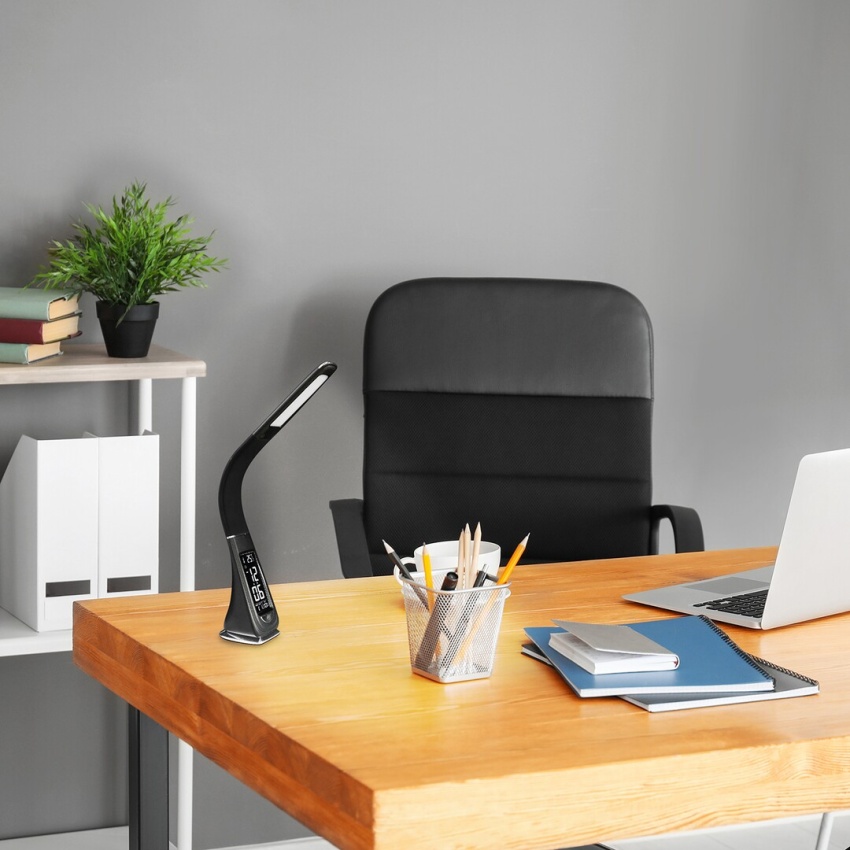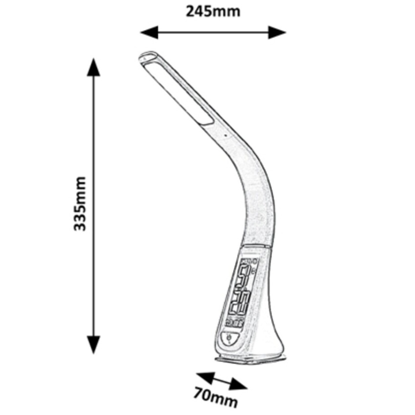Moderní stolní svítidlo Lionel bude skvělou volbou v pracovně nebo dětském pokoji. Tento celoplastový model s přirozeným bílým světlem může poskytnout skvělou podporu při práci nebo učení. Jeho digitální displej s pohodlnou velikostí písma zajišťuje snadnou čitelnost. Navíc díky svému designu zabírá skutečně málo místa, což z něj dělá praktickou volbu i pro menší pracovní stůl. Tento černý model vyrobený v pružném provedení má zabudovanou žárovku LED s výkonem 5 W, světelný tok 260 lumenů a životnost 30 000 hodin. Světelný zdroj má barevnou teplotu 5 000 K. Svítidlo Lionel je možné ztlumit, to znamená, že jas lze nastavit pomocí dotykového spínače ve spodní části žárovky. Digitální displej svítidla je provozován baterií CR2032, která je součástí balení. Rozměry stolního svítidla jsou následující: šířka dekoračního podstavce je 70mm, celková výška svítidla je 335mm, výsuv 245mm.