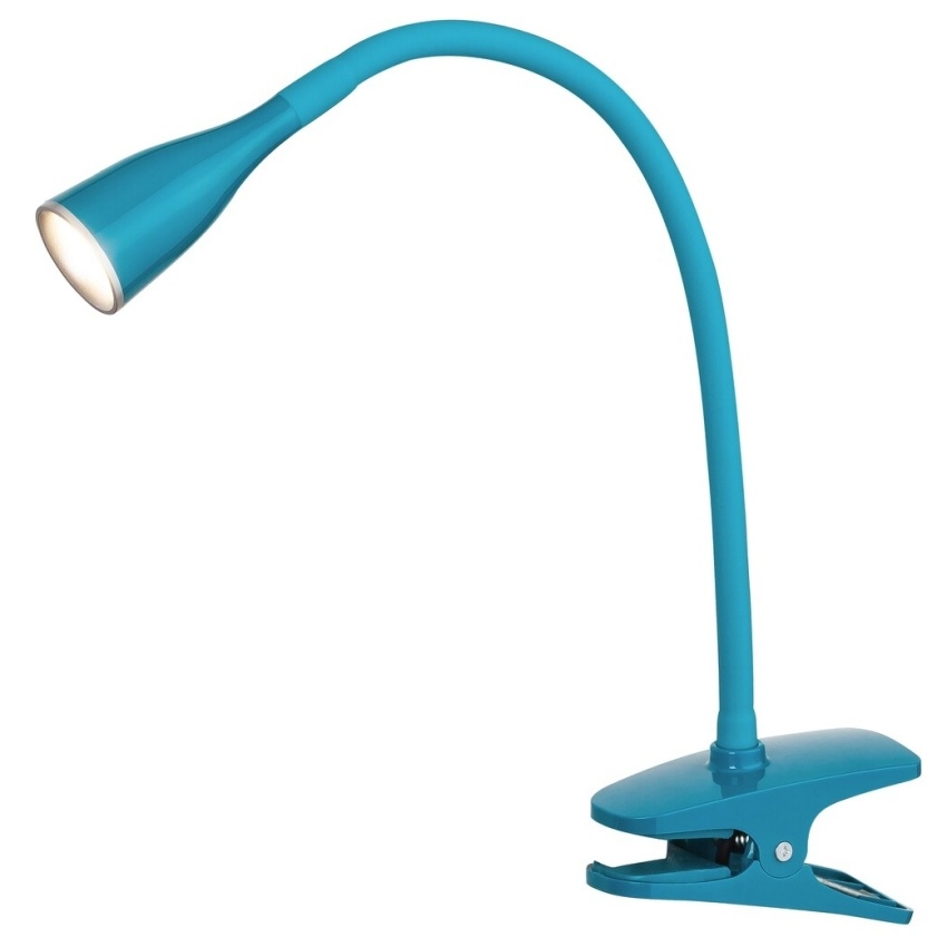 LED stolní skřipcové svítidlo s husím krkem v modré barvě
