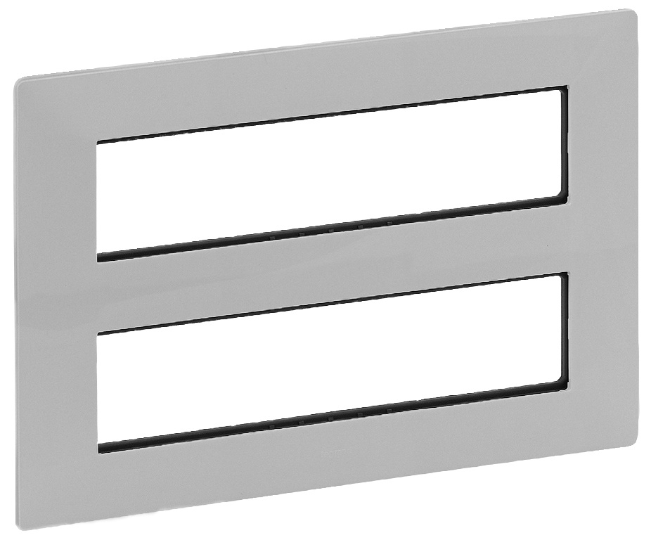 Rámeček pro 2x8 modulů Mosaic, pro přístroje Mosaic, ve stříbrné barvě.