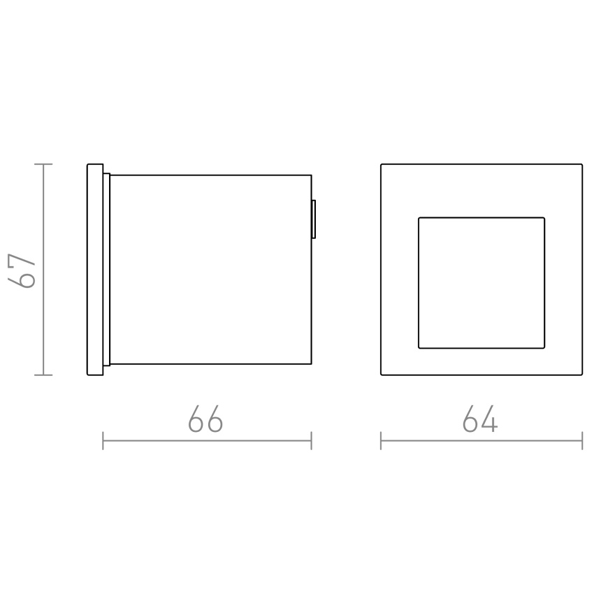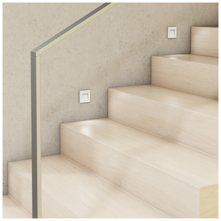 Zápustné hranaté svítidlo do stěny vhodné pro venkovní i vnitřní použití. Včetně montážního boxu. Instalace pouze svícením dolů.