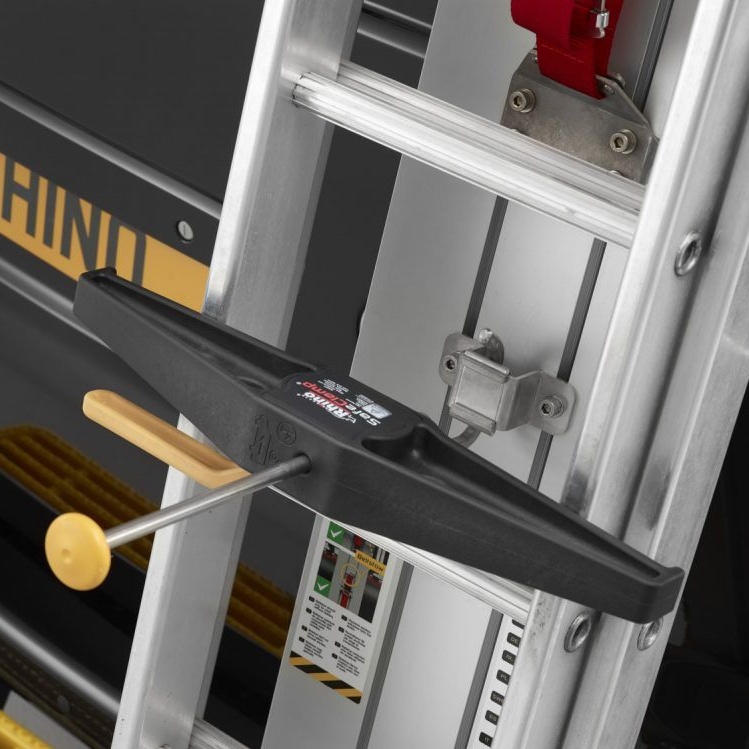 Rhino SafeClamp spojuje sílu, rychlost a styl a představuje revoluční systém upínání žebříků. Použití kompozitní konstrukce nosníku a kotevního háku z nerezové oceli nabízí vysokou pevnost a zároveň vynikající odolnost proti korozi. Inovativní metoda upínání jedním dotykem zajišťuje, že operace je pětkrát rychlejší než u tradičních šroubových žebříkových upínačů.