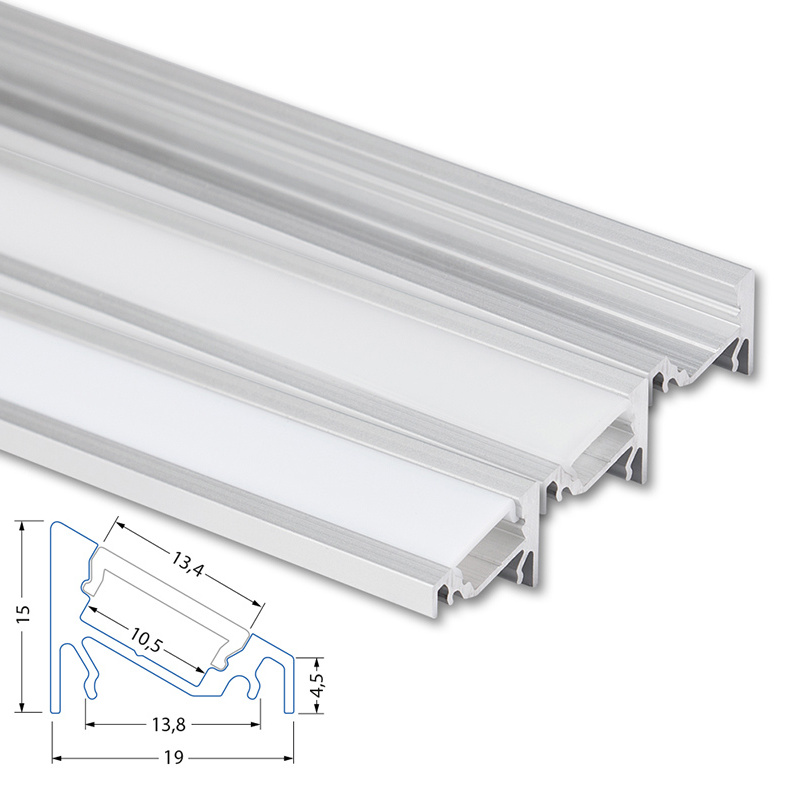Rohový hliníkový profil pro LED pásky, rozměry průřezu cca 19x15 mm. Součástí je mléčný difuzor, který lze do profilu nacvaknout. Tento profil je určen pro krytí a chlazení LED pásků do šíře až 10 mm a výkonu max. 19,2 W/m. Profil lze upevnit pomocí samostatně prodávaných úchytů, případně jej lze přivrtat nebo přilepit. K profilu lze zakoupit také koncovky.