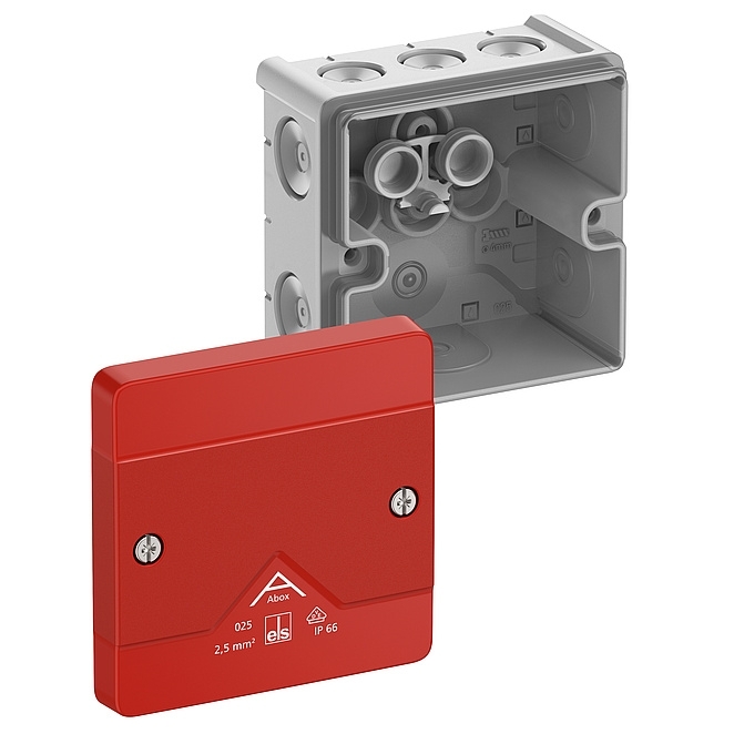 Rozbočovací krabice Spelsberg Abox 025-L/SB IP66 87x87x52mm prázdná s červeným víkem šedá 80270001