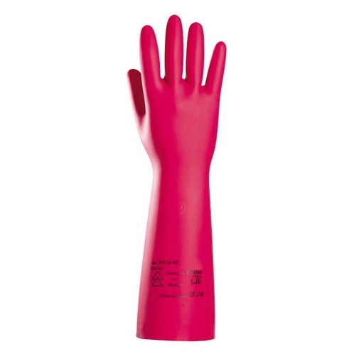 Dielektrické rukavice. Ochrana před dotykovým napětím do 1000 V. Délka rukavice: 41 cm. Doporučené použití: práce pod napětím. Odvětví: energetici, elektrikáři.