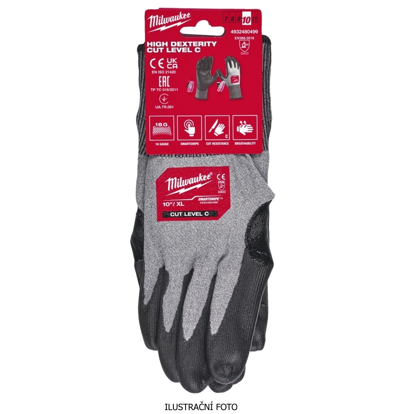 Rukavice s vysokou citlivostí odolné proti proříznutí stupeň C Milwaukee 8/M 1ks 4932480497
