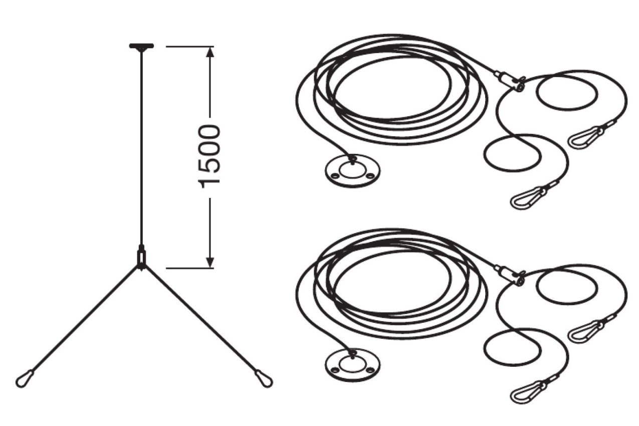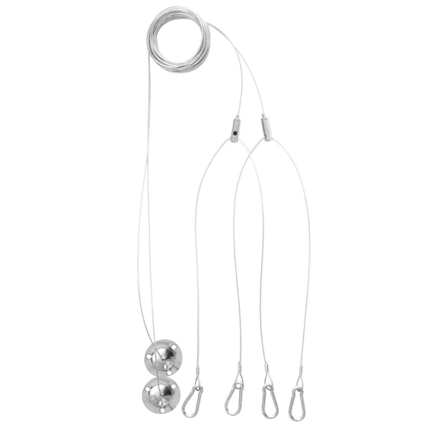 Sada pro zavěšení svítidel Panel. Vlastnosti produktu: Nastavitelné ocelové dráty, každý o max. délce 1,5 m. Výhody produktu: Nastavitelná délka zavěšení pomocí šroubů až na 1,5 m.