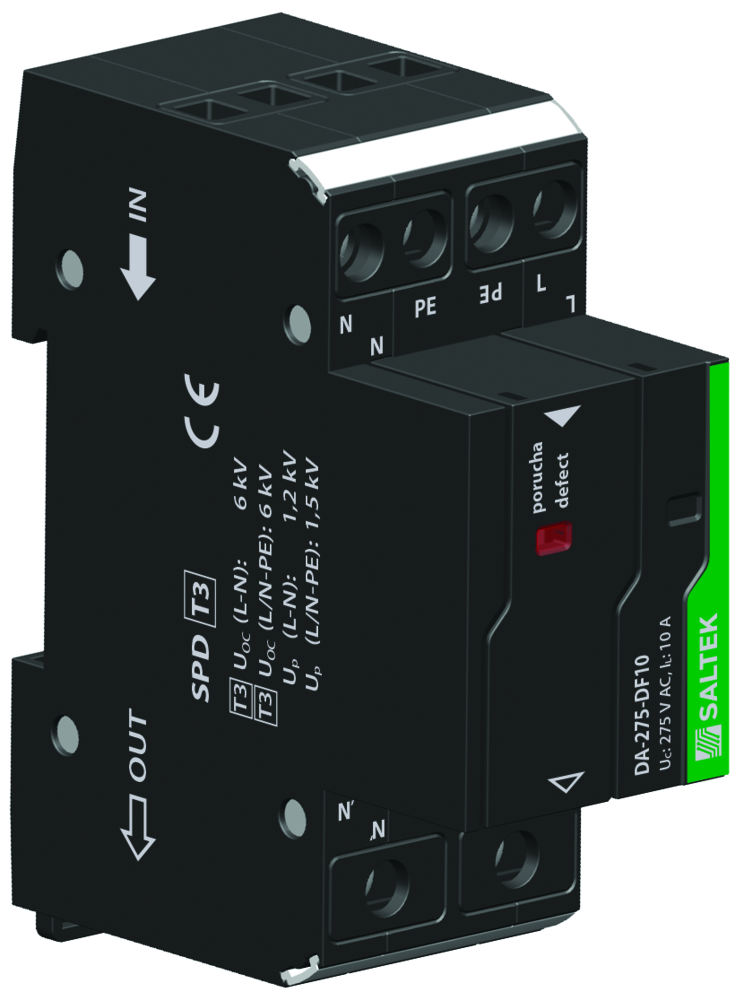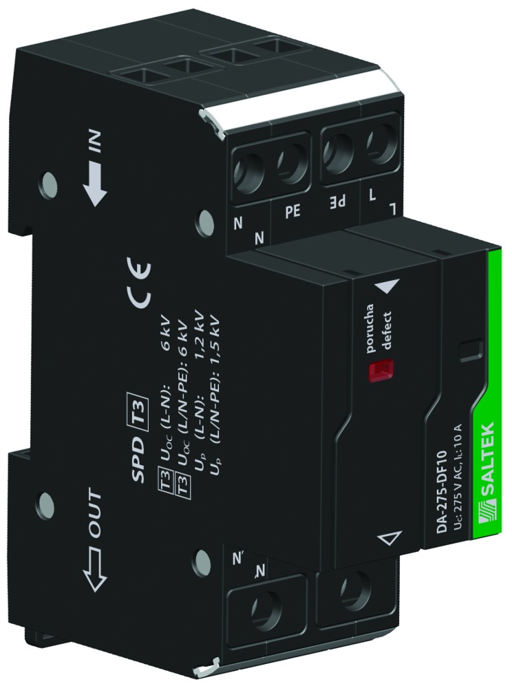 SPD typu 3 – přepěťová ochrana s vf filtrem, optická signalizace poruchy.