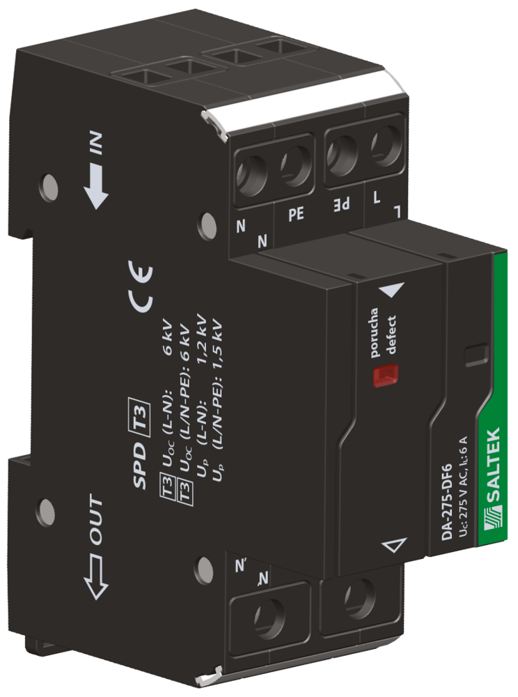 SPD typu 3 – přepěťová ochrana s vf filtrem, optická signalizace poruchy.