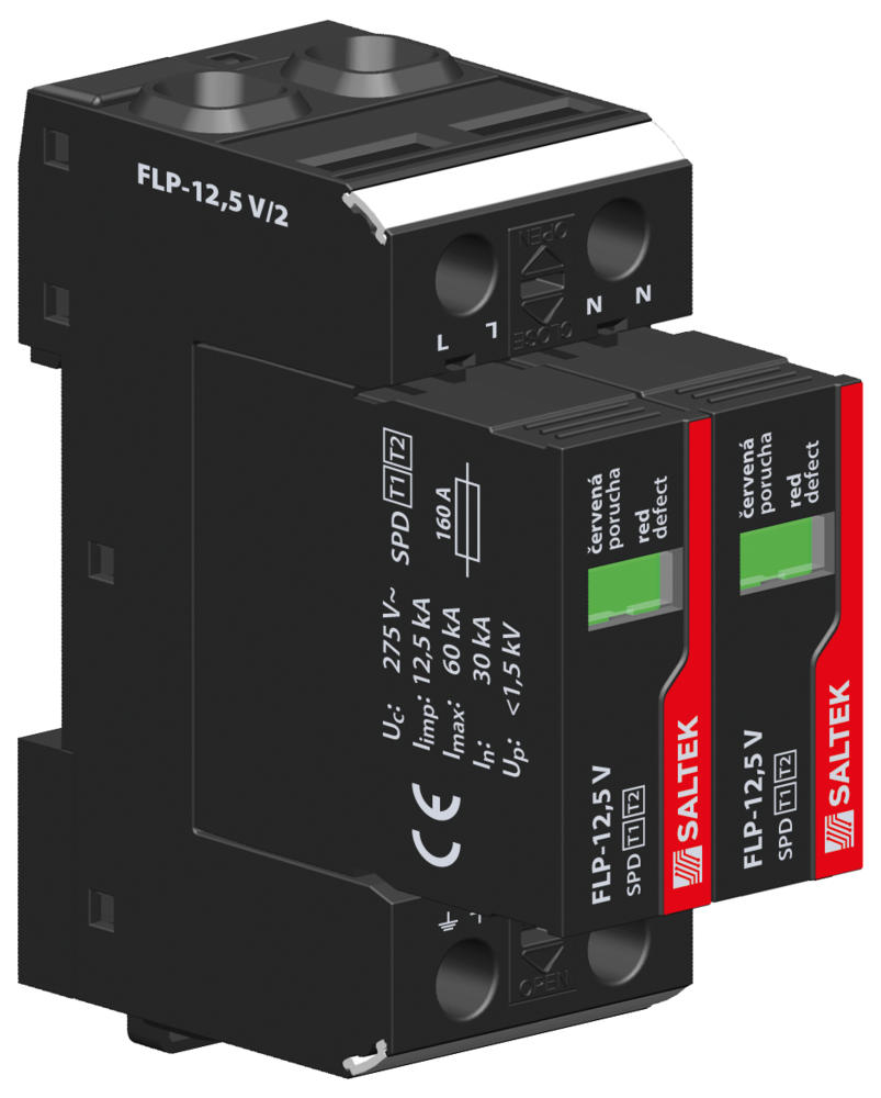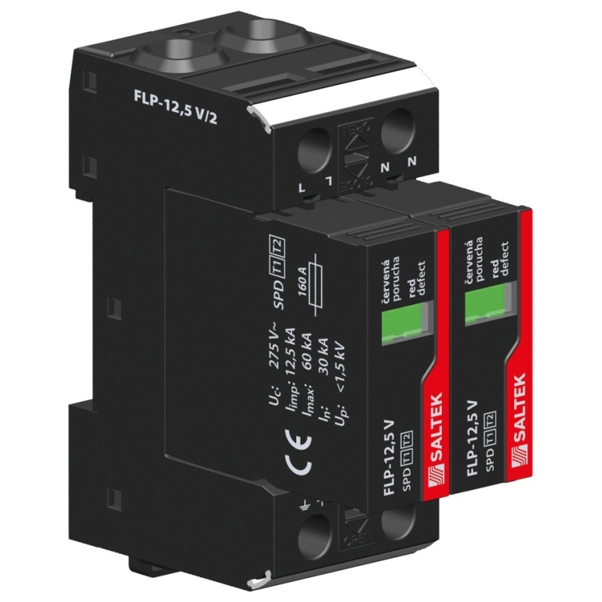 SALTEK SVODIČ FLP-12,5 V/2 TYP 1+2 12,5KA/30KA 230VAC 2PÓL