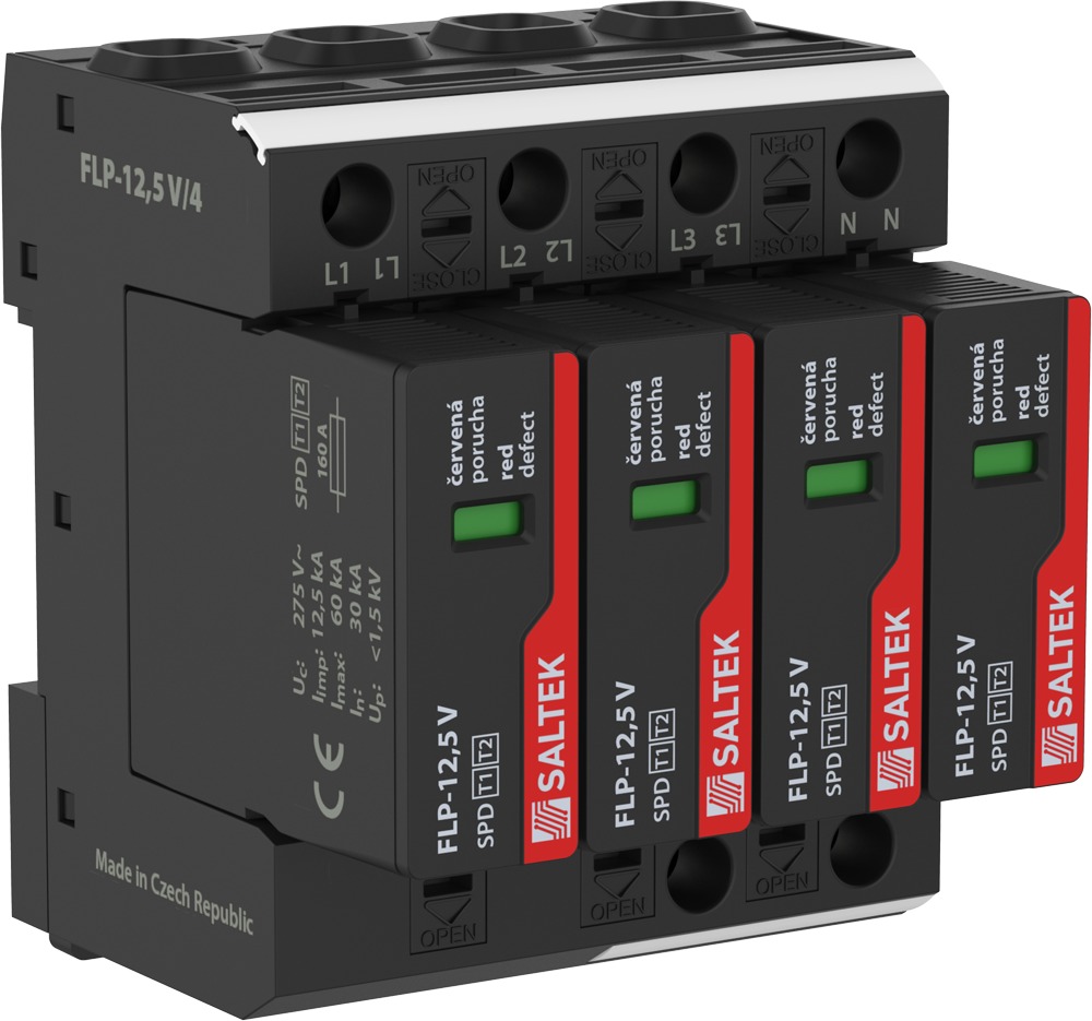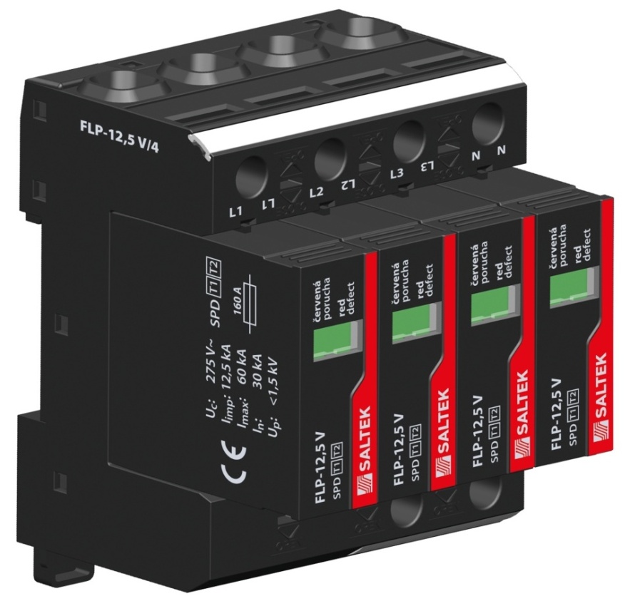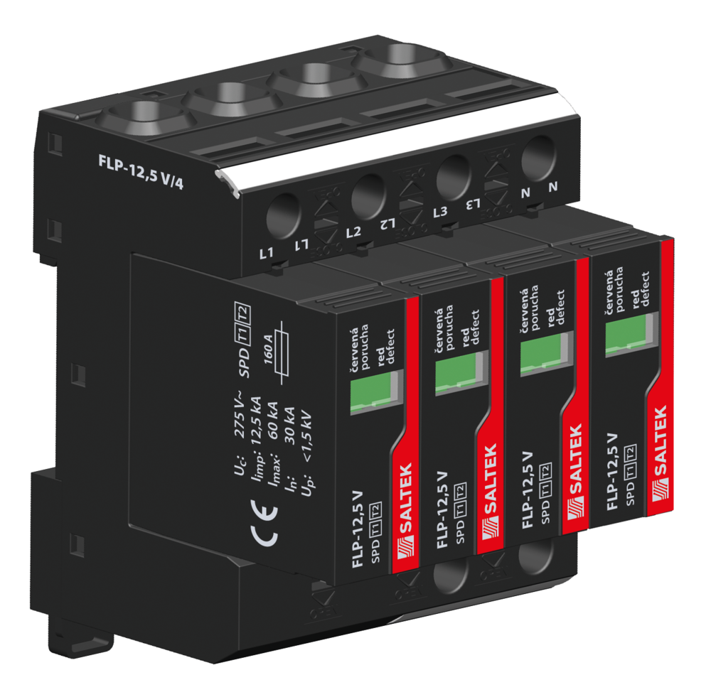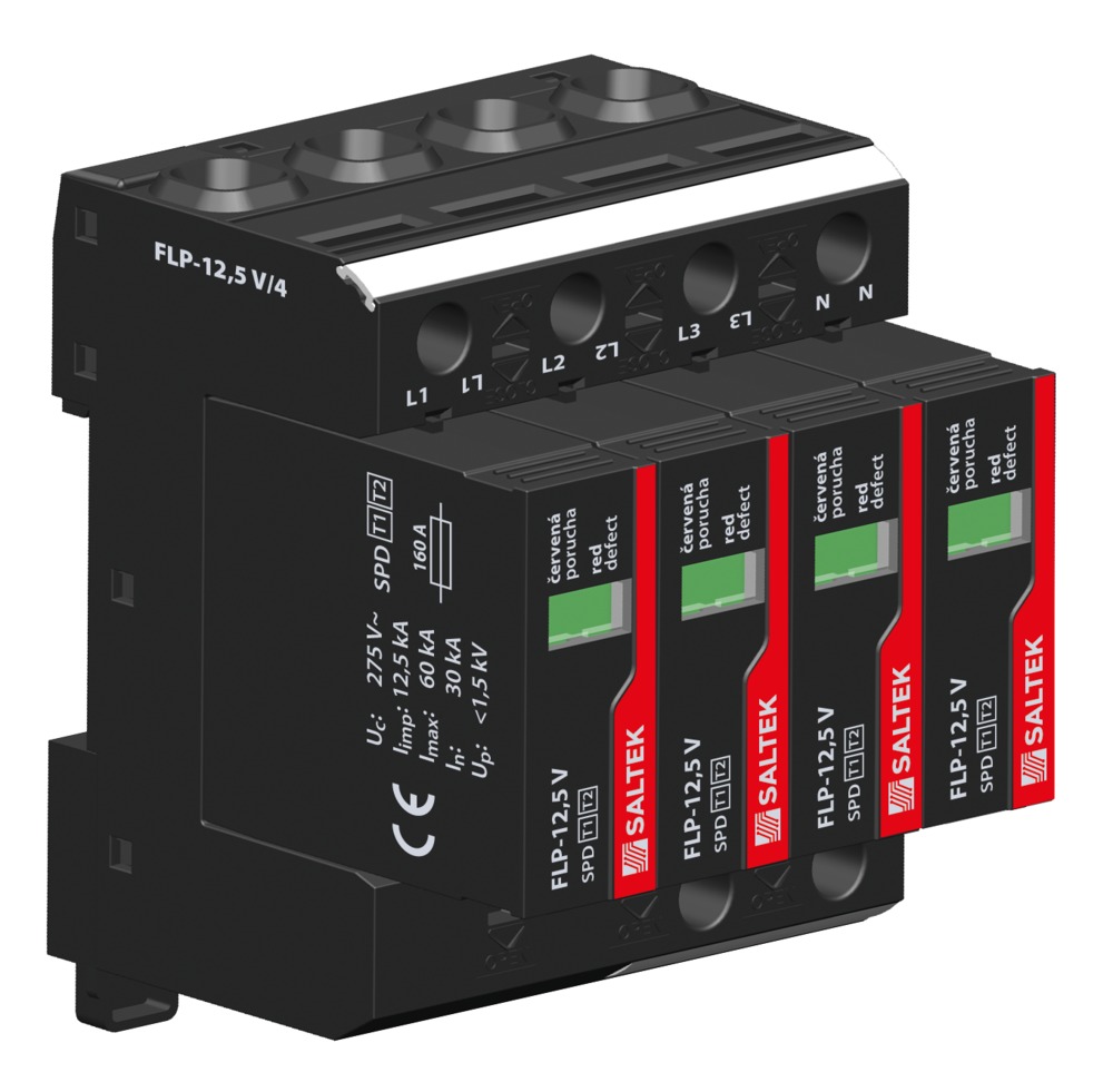 SALTEK SVODIČ FLP-12,5 V/4, TYP 1+2, 4X12,5KA/30KA, 230VAC, 4PÓL
