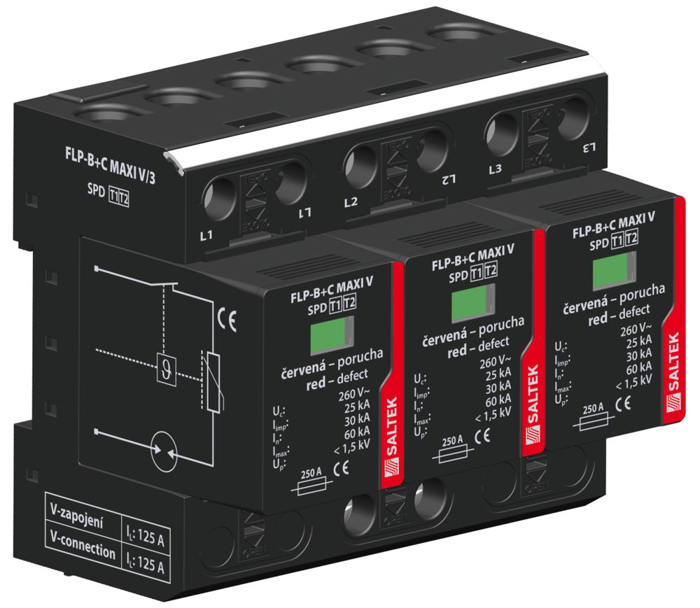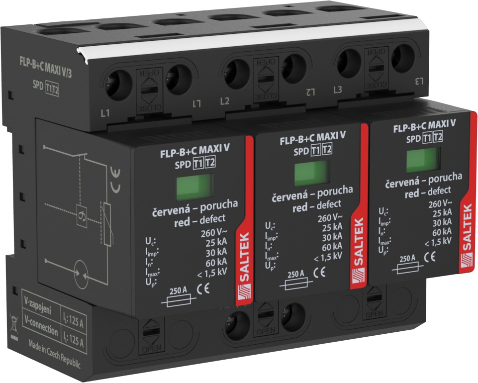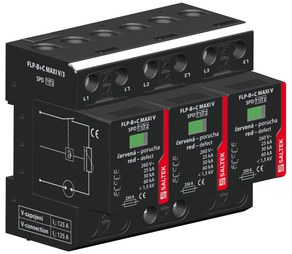 SALTEK SVODIČ FLP-B+C MAXI V/3, TYP1+2, 3X25KA/30KA, 230V, 3PÓL, PRO SÍTĚ TN-C