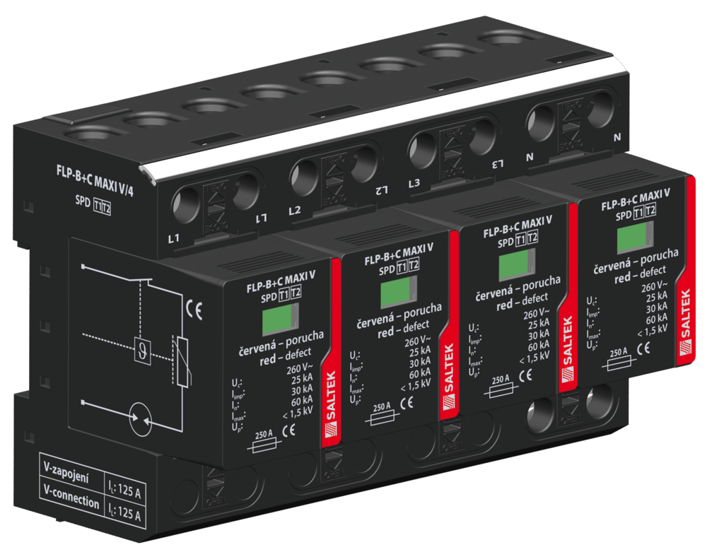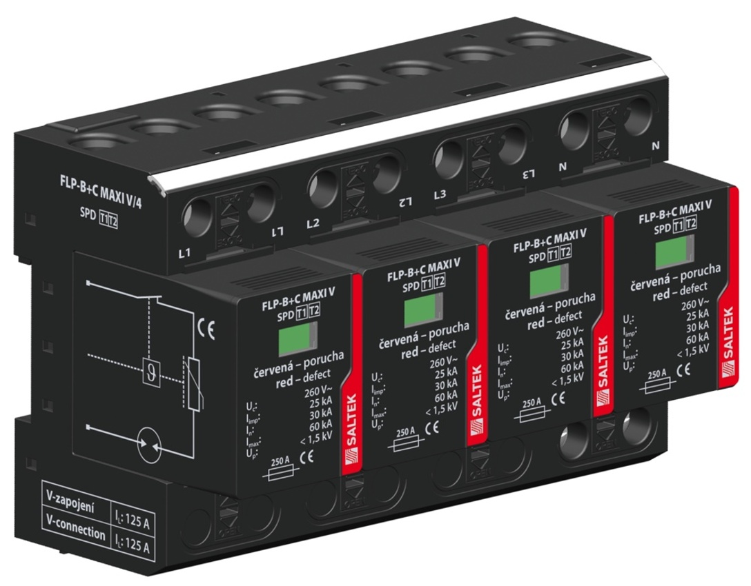 SALTEK SVODIČ FLP-B+C MAXI V/4, TYP1+2, 4X25KA/30KA, 230V, 4PÓL, PRO SÍTĚ TN-S