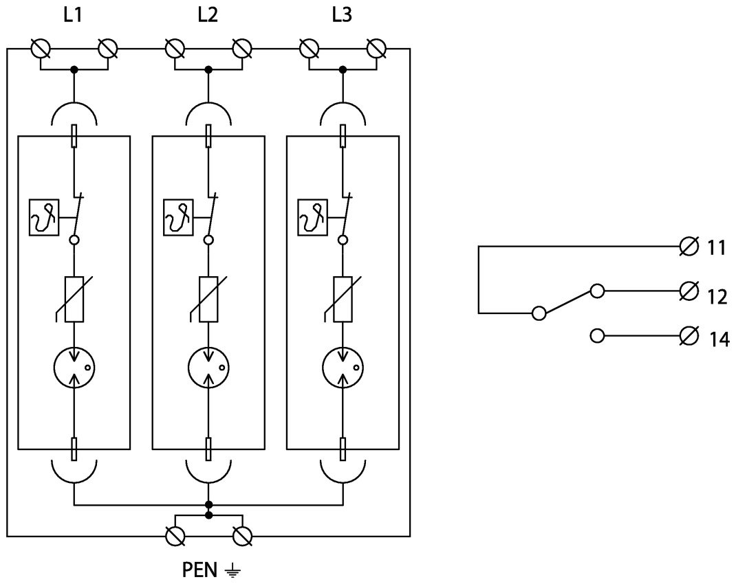 - třípólový výkonný kombinovaný svodič bleskových proudů