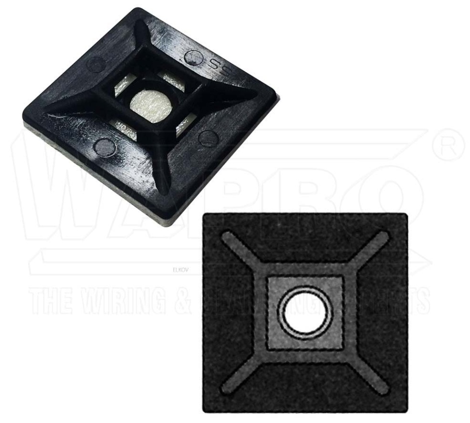 Samolepící (šroubovací) příchytky pro pásky do 5,5mm WAPRO M-AS-28BK 28,6x28,6mm černá wpr7733